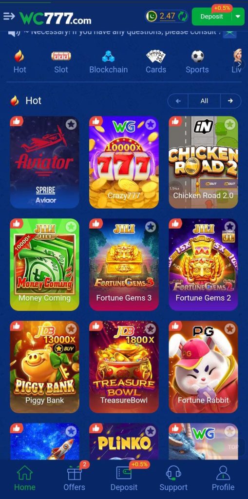 WC777 Game is one of the best games, and right now it is the most played game all over Pakistan. In it, you will also find many other games that you can use to earn well. If you are from Pakistan and want to earn money by playing games, then right now this game is the best choice. You must try playing it.