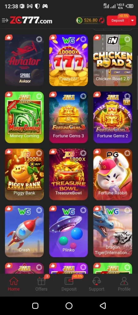 The ZC777 Game gives you access to many different casino games. This app is considered one of the best casino apps in Pakistan because it provides something for every user according to their choice. Games like Dragon Tiger, Crash, and Roulette are easily available here.